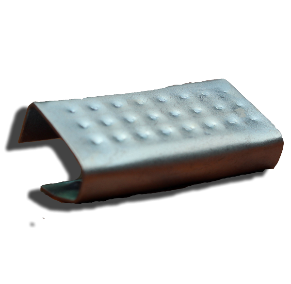 Sello metálico, utilizado para evitar que el flejado pierda tensión, dando más seguridad al producto, para fleje de aplicación manual, de gran resistencia los hay lisos y punteados. En diferentes medidas y calibres.