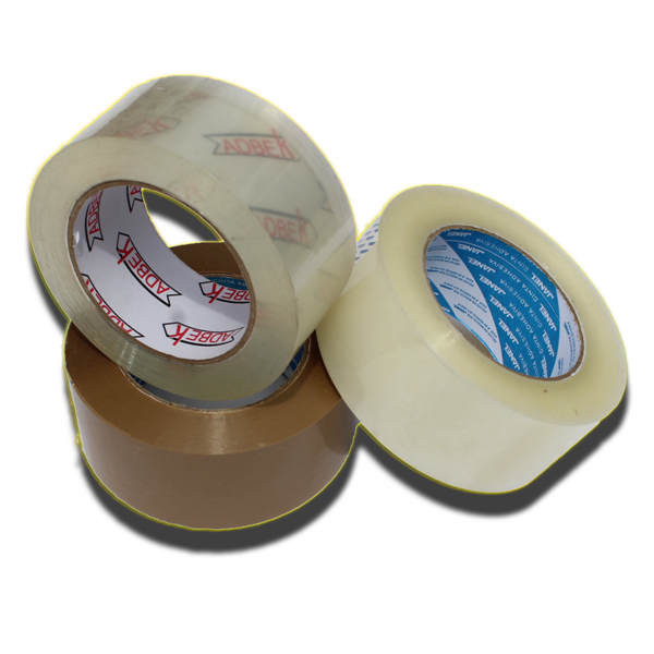 Adhesivo hot melt extrarresistente se adhiere instantáneamente a cajas de cartón corrugado. Medidas: 12mm, 18mm, 24mm, 36mm, 48mm, 72mm.
